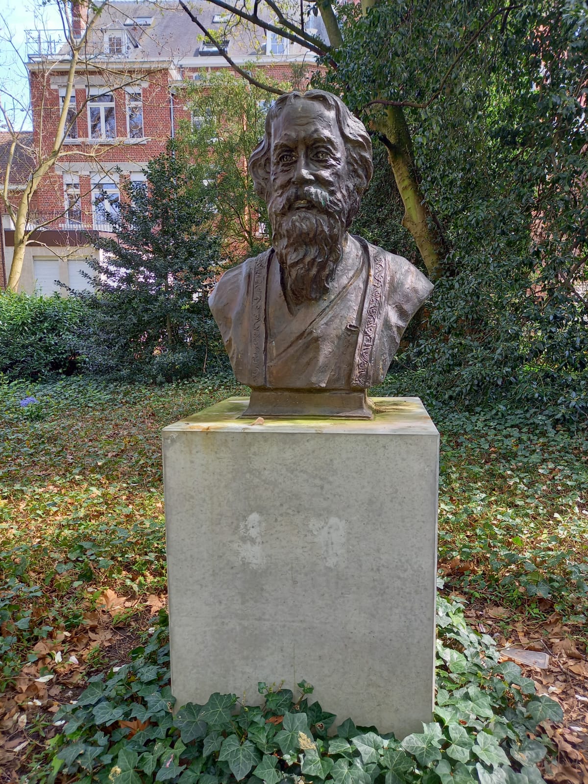 The bronze statue of Tagore in the Erasmus garden in Leuven was inaugurated on May 7, 2015 by the Ambassador of India to Belgium, H.E. Mr. Manjeev Singh Pur. It was placed there on the occasion of Tagore’s 154th birthday. It’s the first bust of the famous Indian artist installed in Belgium.